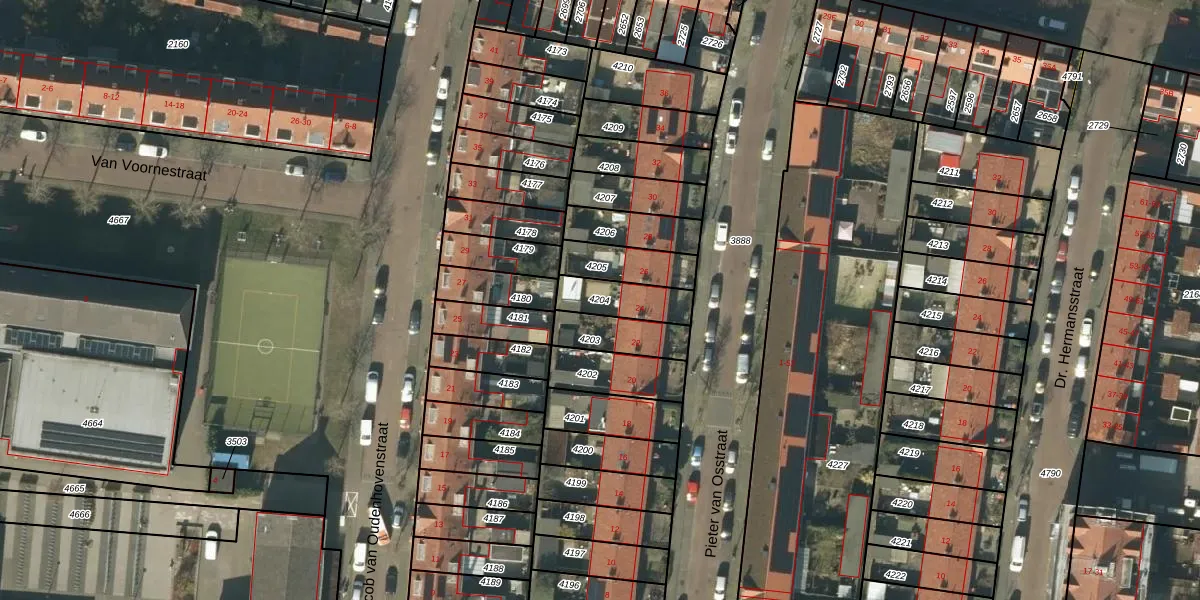 Gebruik de zoekbalk of klik op een perceel om informatie over het perceel te bekijken.