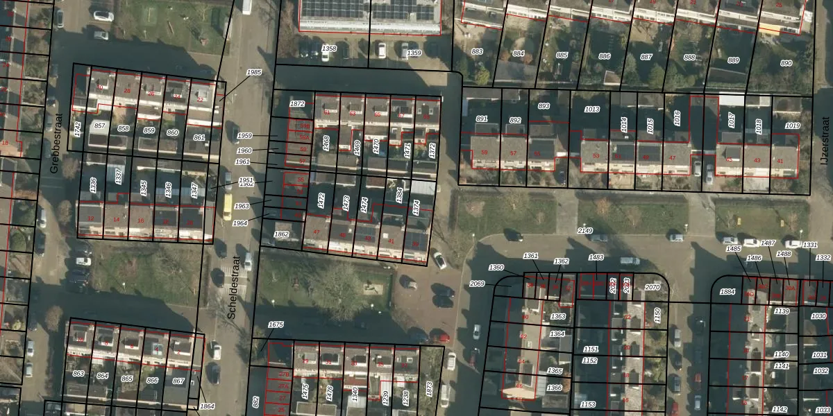 Gebruik de zoekbalk of klik op een perceel om informatie over het perceel te bekijken.