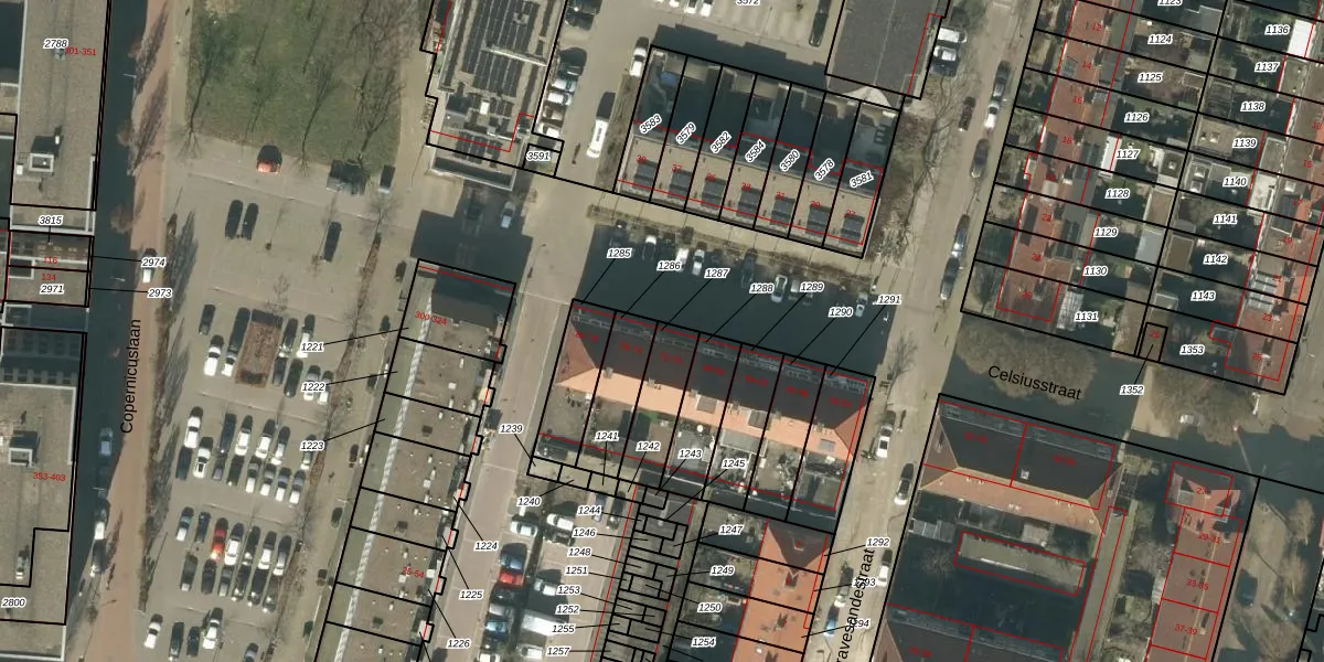 Gebruik de zoekbalk of klik op een perceel om informatie over het perceel te bekijken.