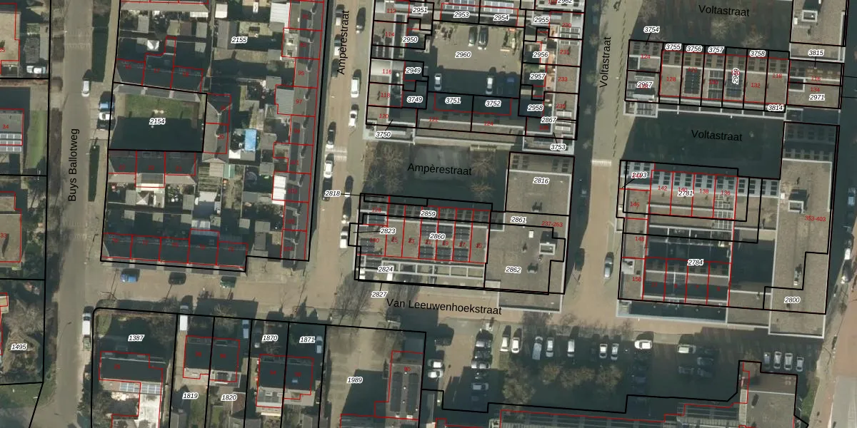 Gebruik de zoekbalk of klik op een perceel om informatie over het perceel te bekijken.