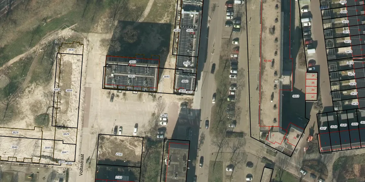 Gebruik de zoekbalk of klik op een perceel om informatie over het perceel te bekijken.