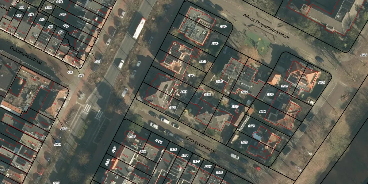 Gebruik de zoekbalk of klik op een perceel om informatie over het perceel te bekijken.