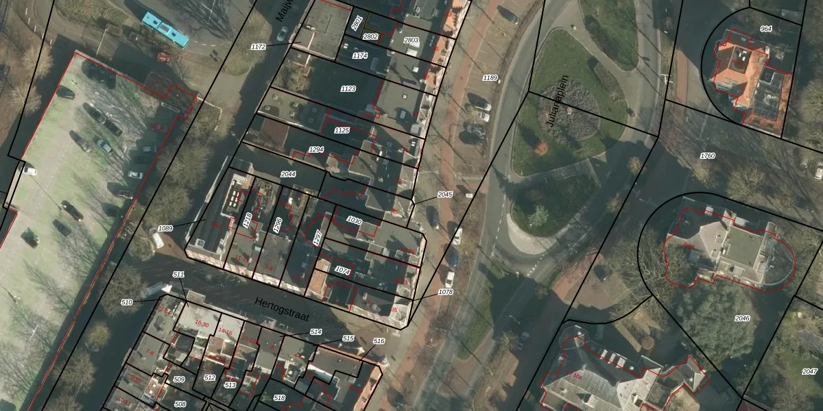 Gebruik de zoekbalk of klik op een perceel om informatie over het perceel te bekijken.