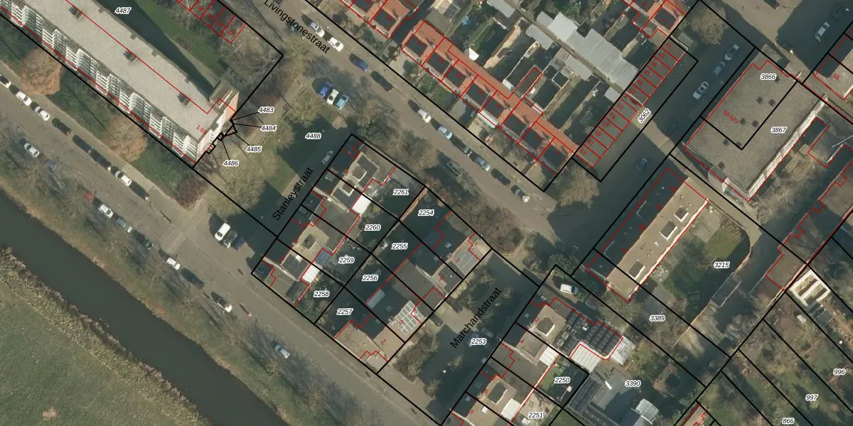 Gebruik de zoekbalk of klik op een perceel om informatie over het perceel te bekijken.