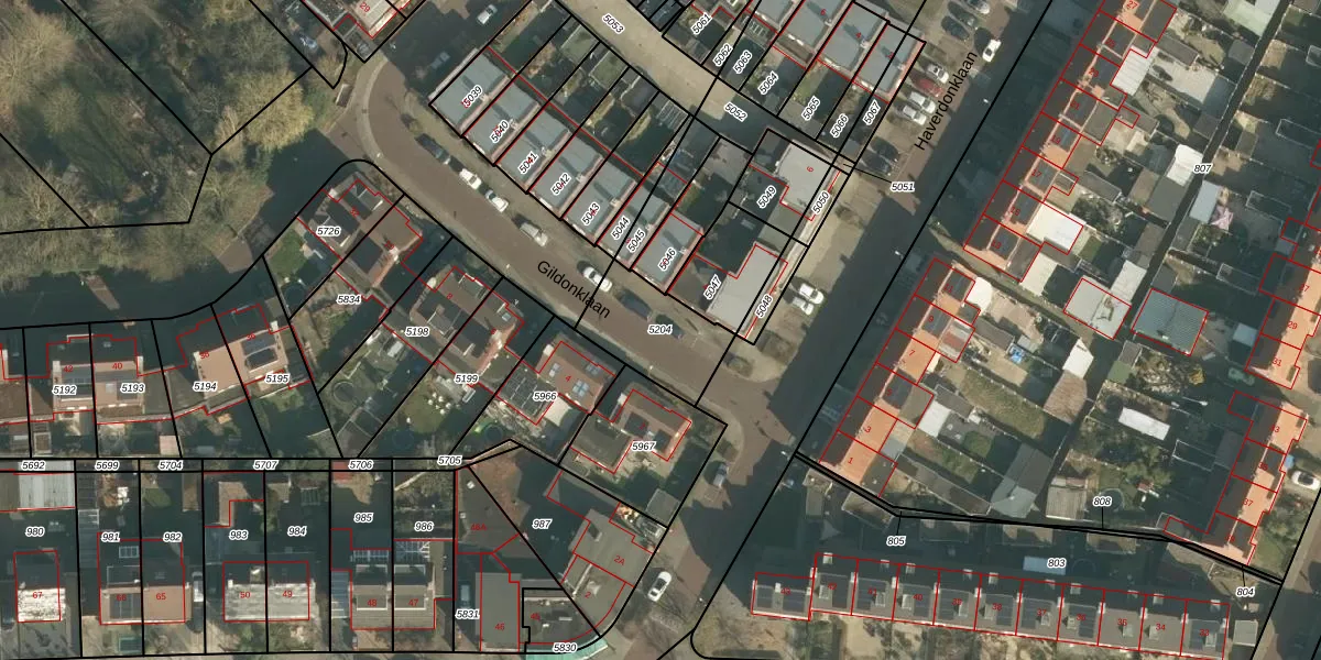 Gebruik de zoekbalk of klik op een perceel om informatie over het perceel te bekijken.