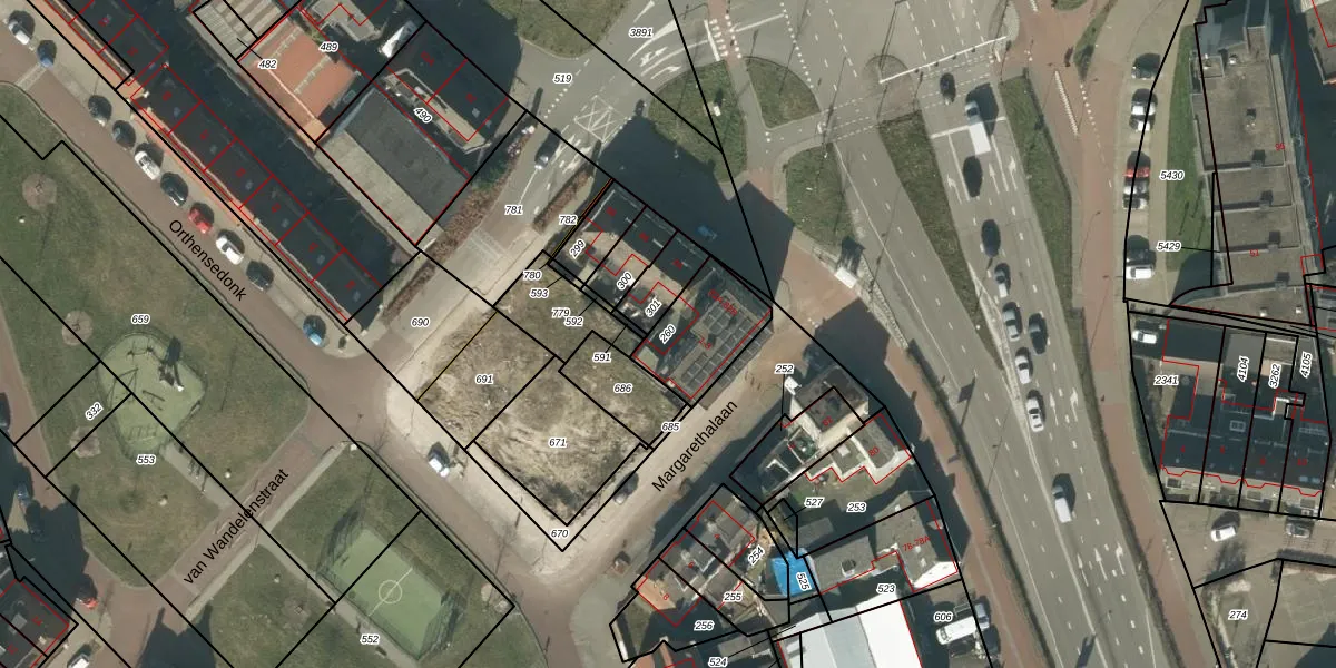 Gebruik de zoekbalk of klik op een perceel om informatie over het perceel te bekijken.