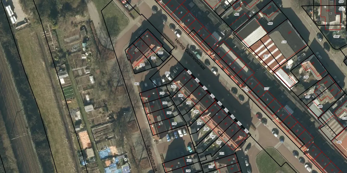 Gebruik de zoekbalk of klik op een perceel om informatie over het perceel te bekijken.