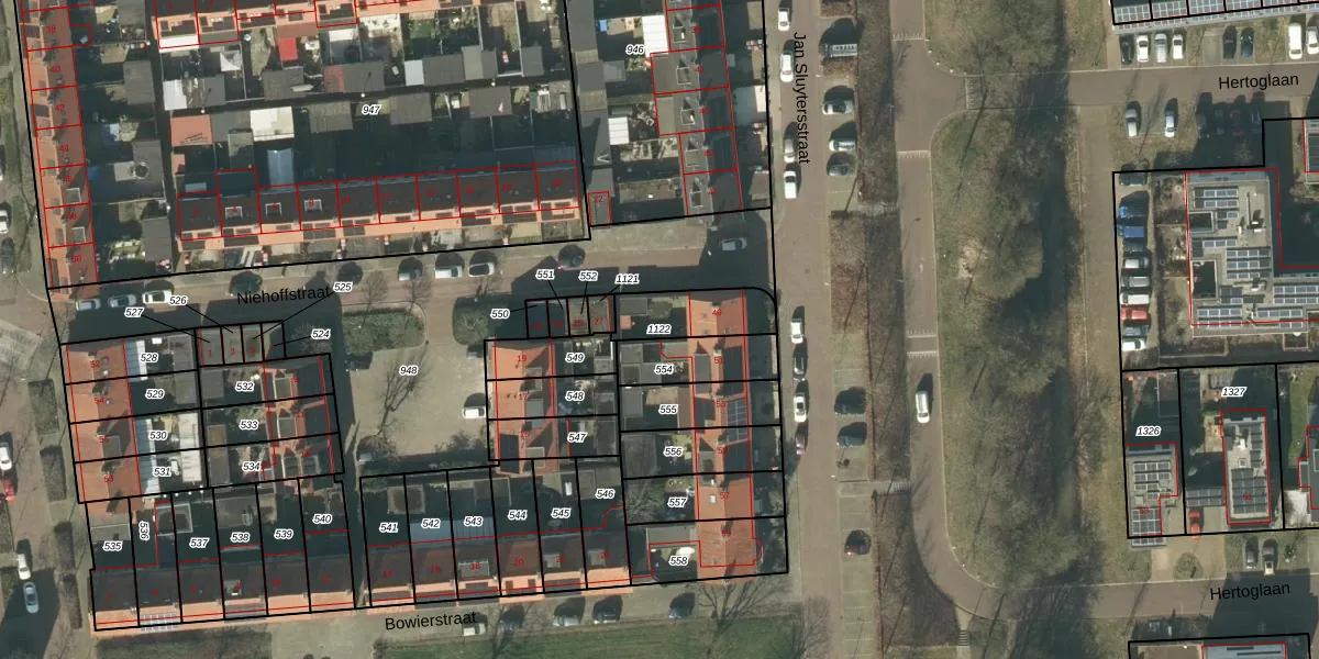 Gebruik de zoekbalk of klik op een perceel om informatie over het perceel te bekijken.