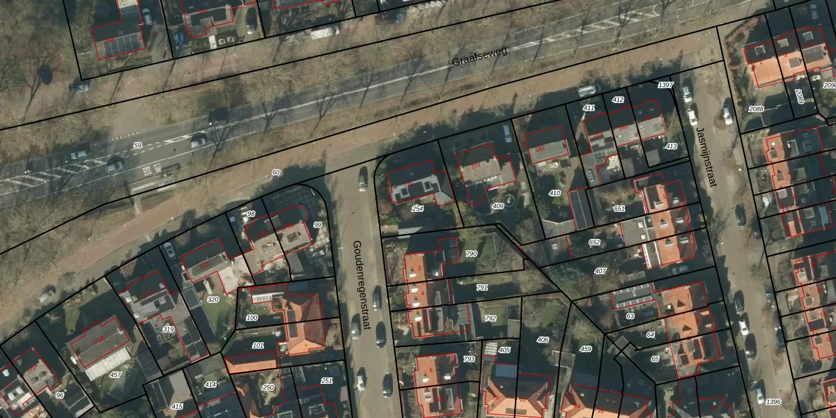 Gebruik de zoekbalk of klik op een perceel om informatie over het perceel te bekijken.