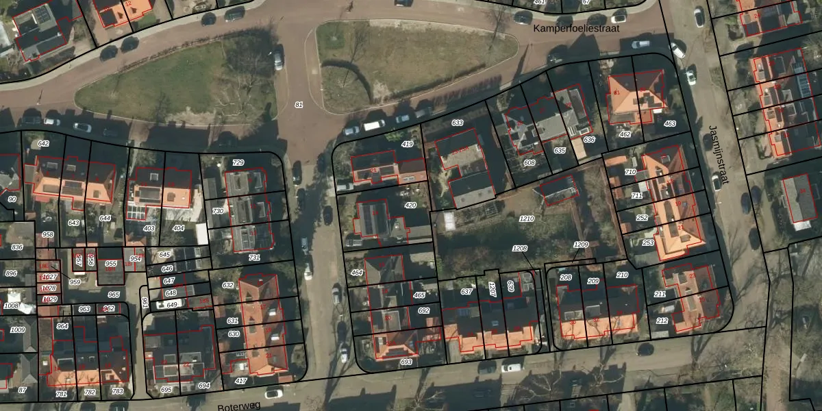 Gebruik de zoekbalk of klik op een perceel om informatie over het perceel te bekijken.