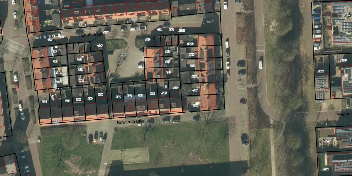 Gebruik de zoekbalk of klik op een perceel om informatie over het perceel te bekijken.