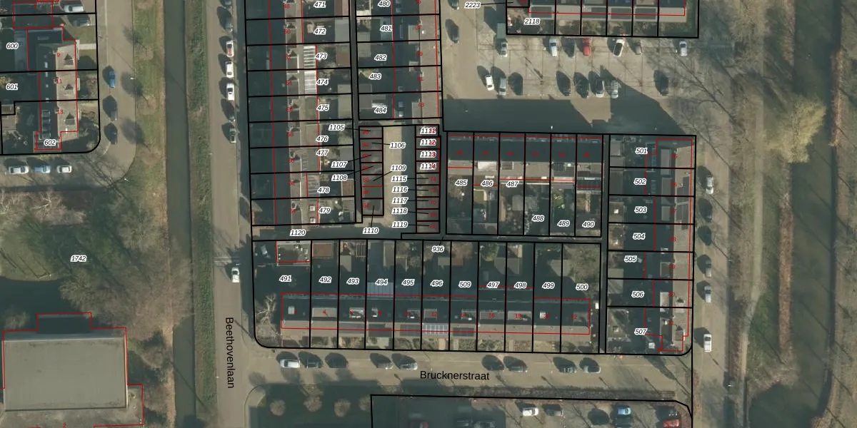 Gebruik de zoekbalk of klik op een perceel om informatie over het perceel te bekijken.