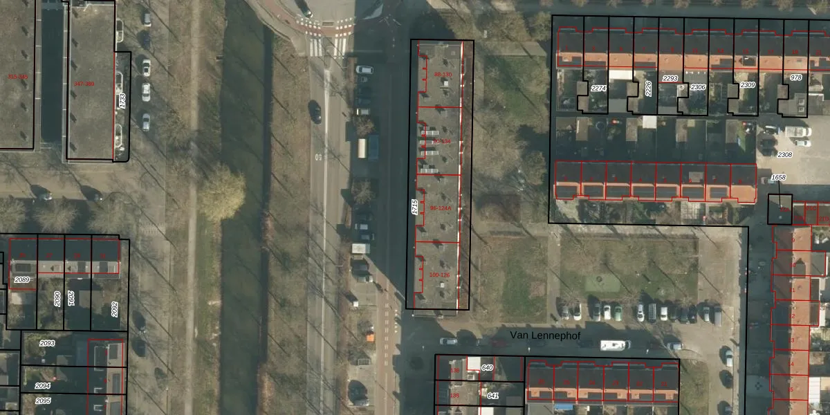 Gebruik de zoekbalk of klik op een perceel om informatie over het perceel te bekijken.