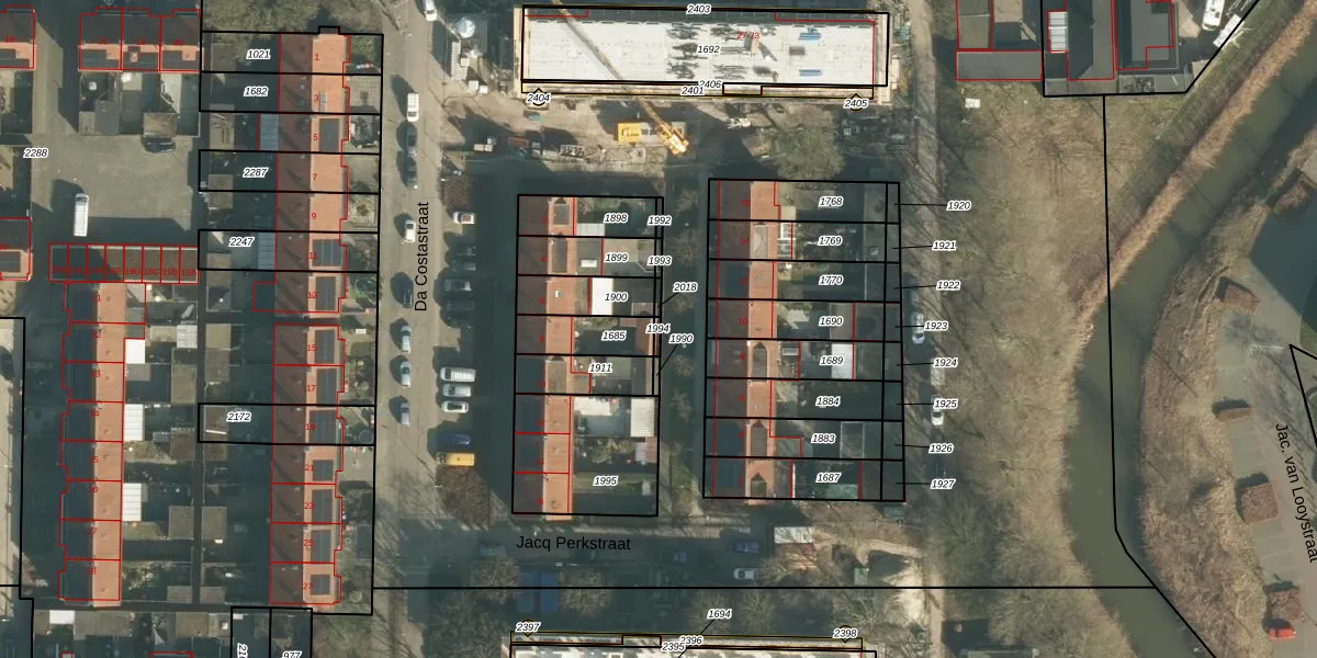 Gebruik de zoekbalk of klik op een perceel om informatie over het perceel te bekijken.