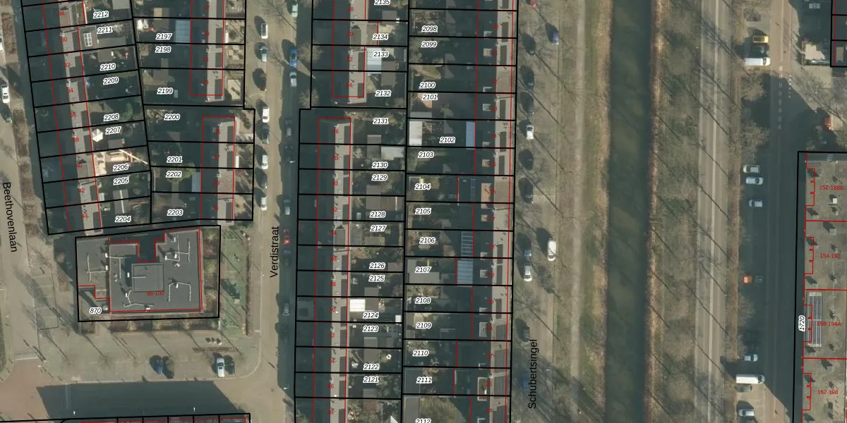 Gebruik de zoekbalk of klik op een perceel om informatie over het perceel te bekijken.