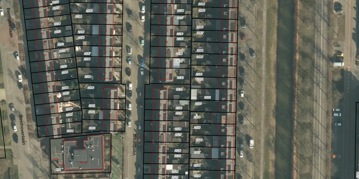 Gebruik de zoekbalk of klik op een perceel om informatie over het perceel te bekijken.