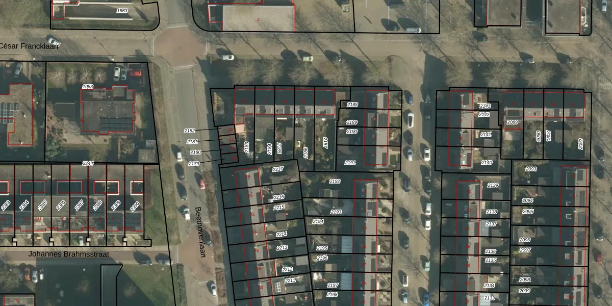 Gebruik de zoekbalk of klik op een perceel om informatie over het perceel te bekijken.