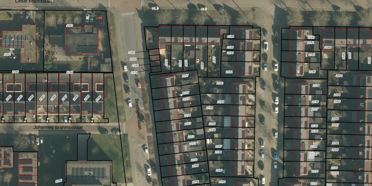 Gebruik de zoekbalk of klik op een perceel om informatie over het perceel te bekijken.