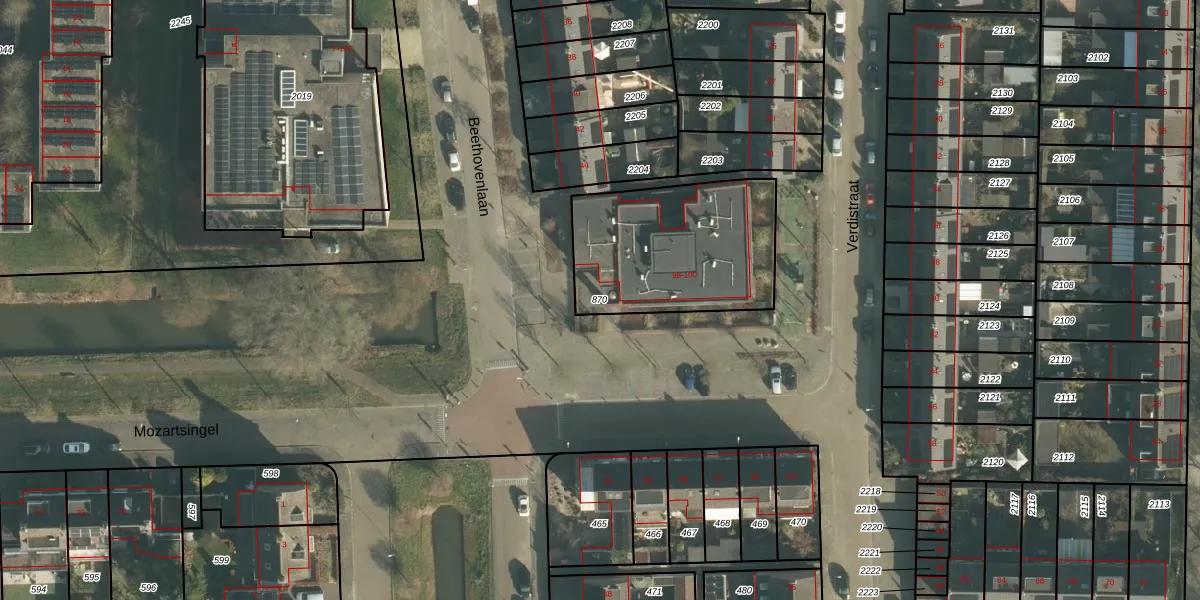 Gebruik de zoekbalk of klik op een perceel om informatie over het perceel te bekijken.