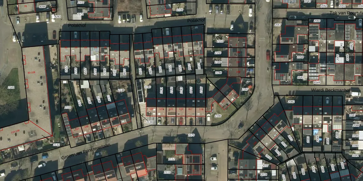 Gebruik de zoekbalk of klik op een perceel om informatie over het perceel te bekijken.