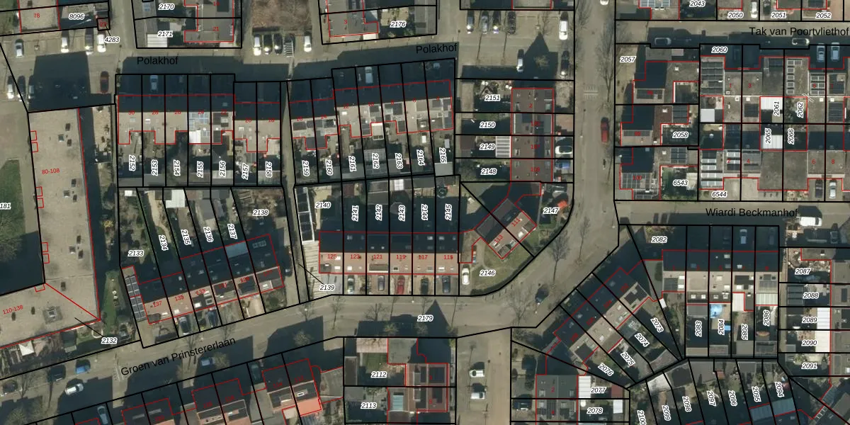 Gebruik de zoekbalk of klik op een perceel om informatie over het perceel te bekijken.