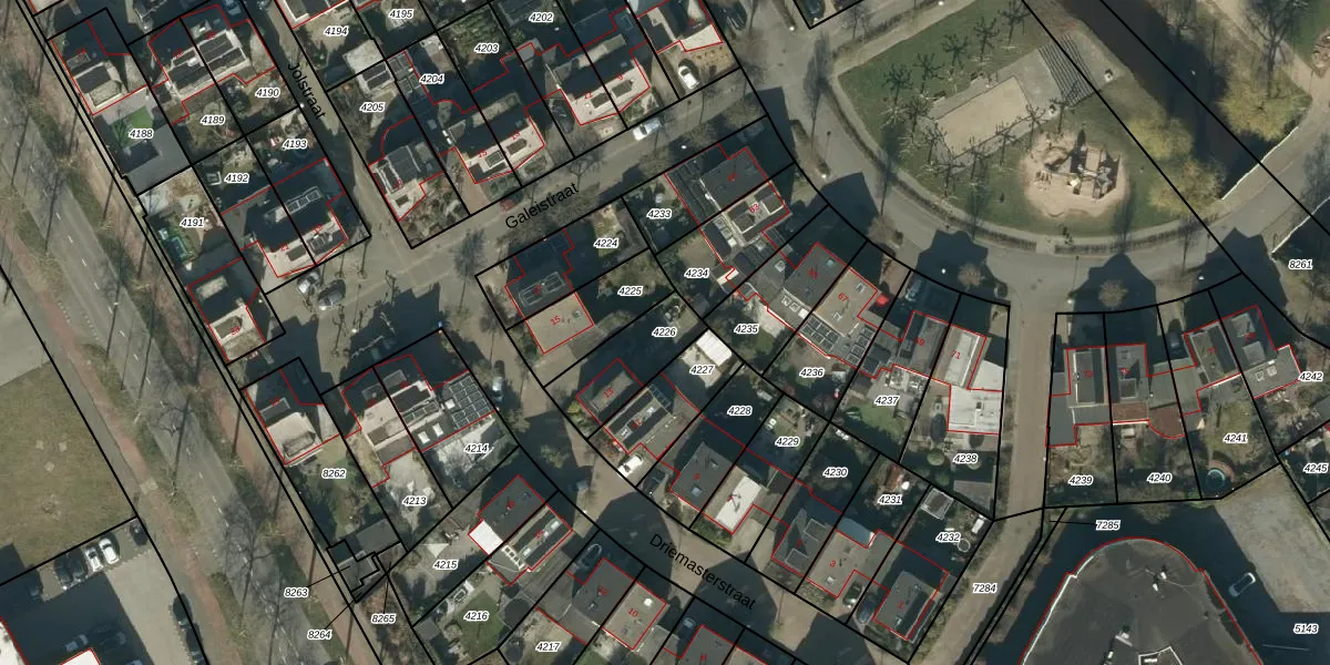 Gebruik de zoekbalk of klik op een perceel om informatie over het perceel te bekijken.