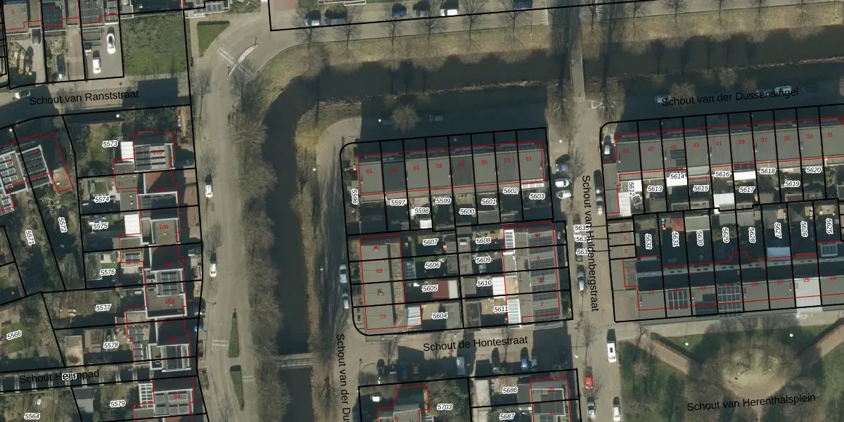 Gebruik de zoekbalk of klik op een perceel om informatie over het perceel te bekijken.