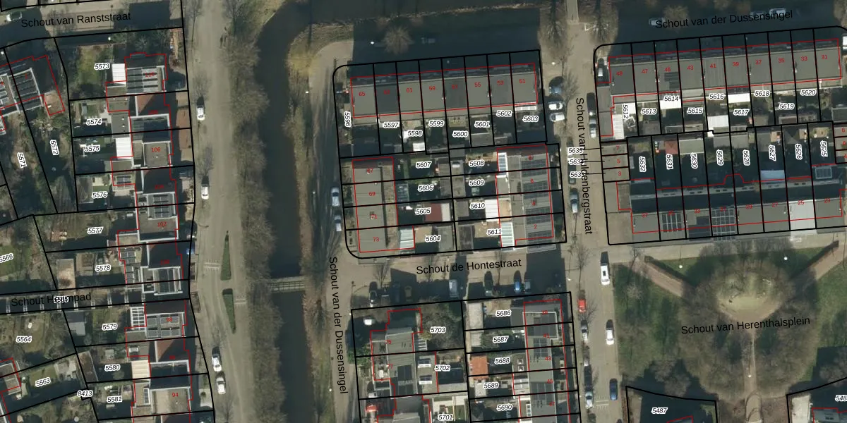 Gebruik de zoekbalk of klik op een perceel om informatie over het perceel te bekijken.