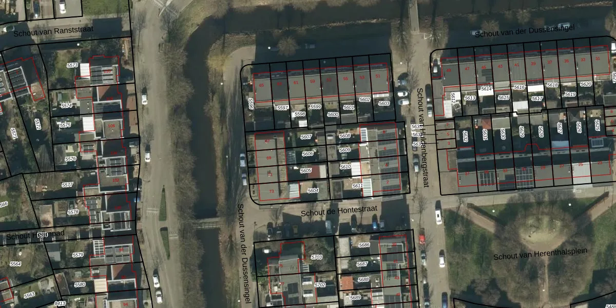 Gebruik de zoekbalk of klik op een perceel om informatie over het perceel te bekijken.