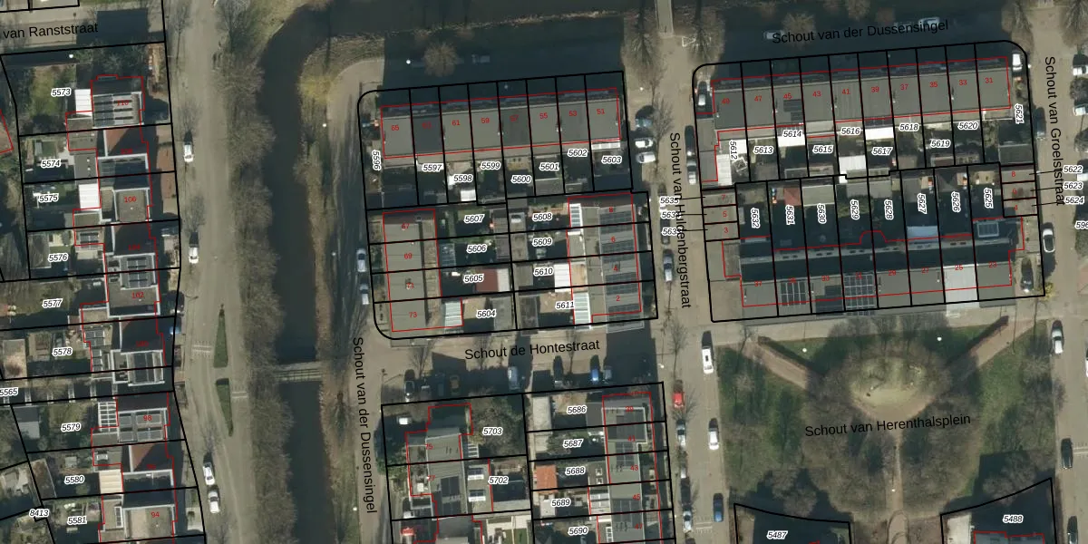 Gebruik de zoekbalk of klik op een perceel om informatie over het perceel te bekijken.