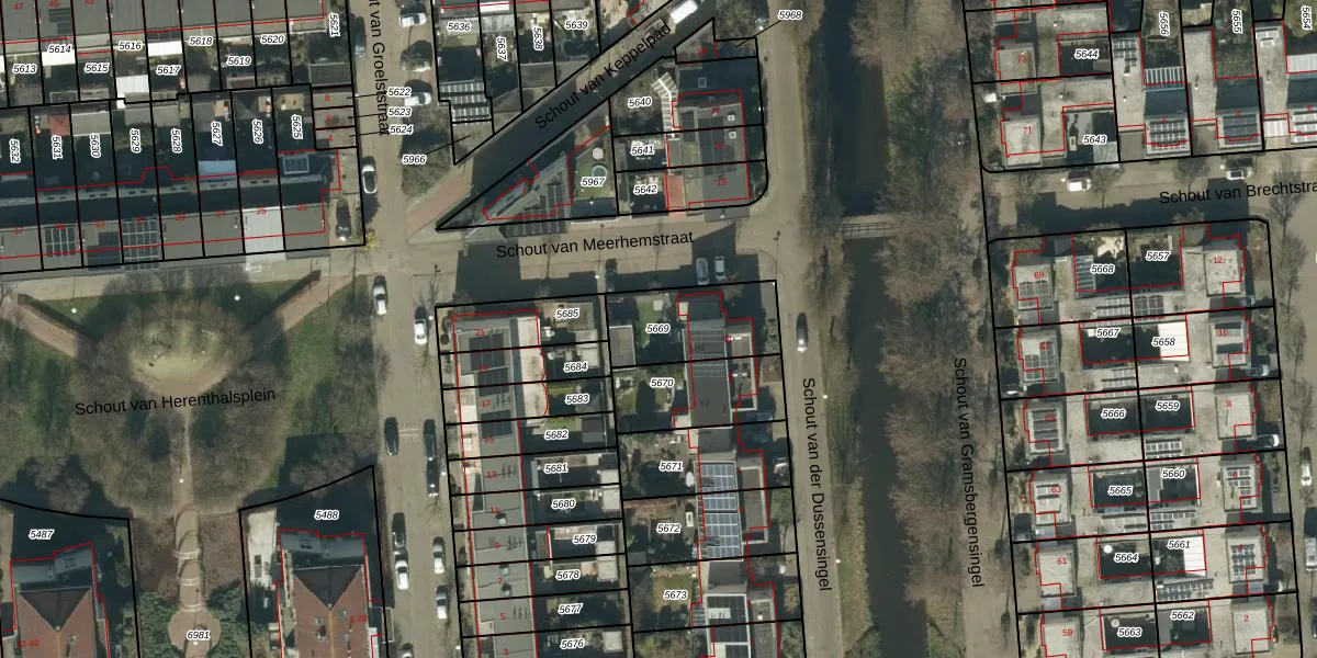Gebruik de zoekbalk of klik op een perceel om informatie over het perceel te bekijken.