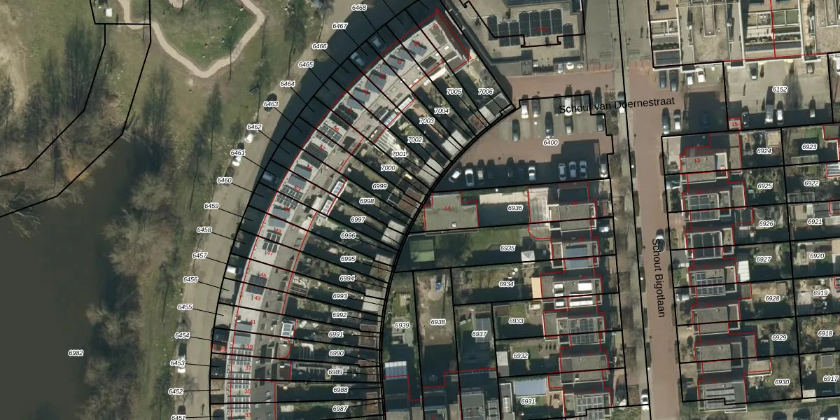 Gebruik de zoekbalk of klik op een perceel om informatie over het perceel te bekijken.