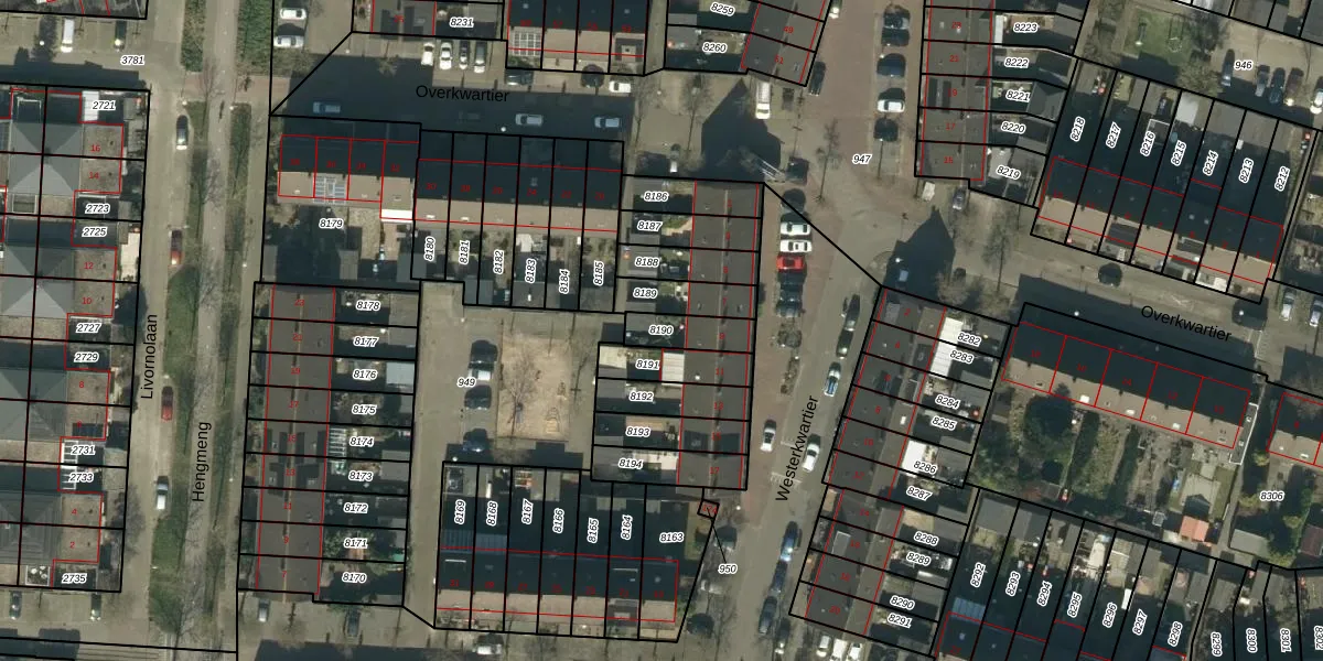 Gebruik de zoekbalk of klik op een perceel om informatie over het perceel te bekijken.