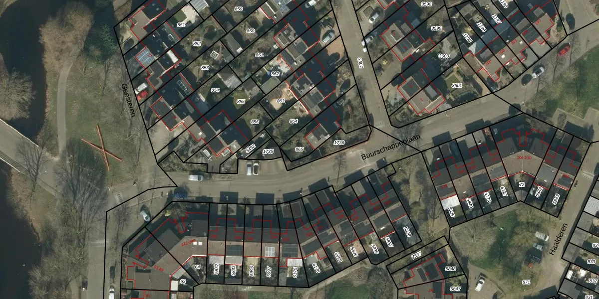 Gebruik de zoekbalk of klik op een perceel om informatie over het perceel te bekijken.