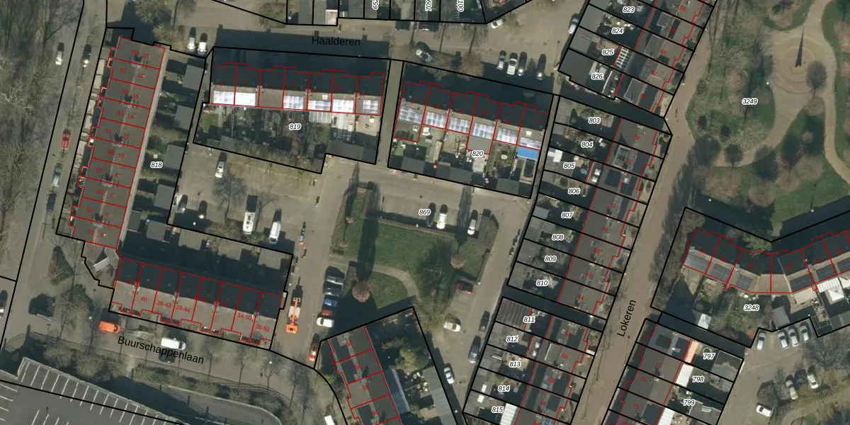Gebruik de zoekbalk of klik op een perceel om informatie over het perceel te bekijken.