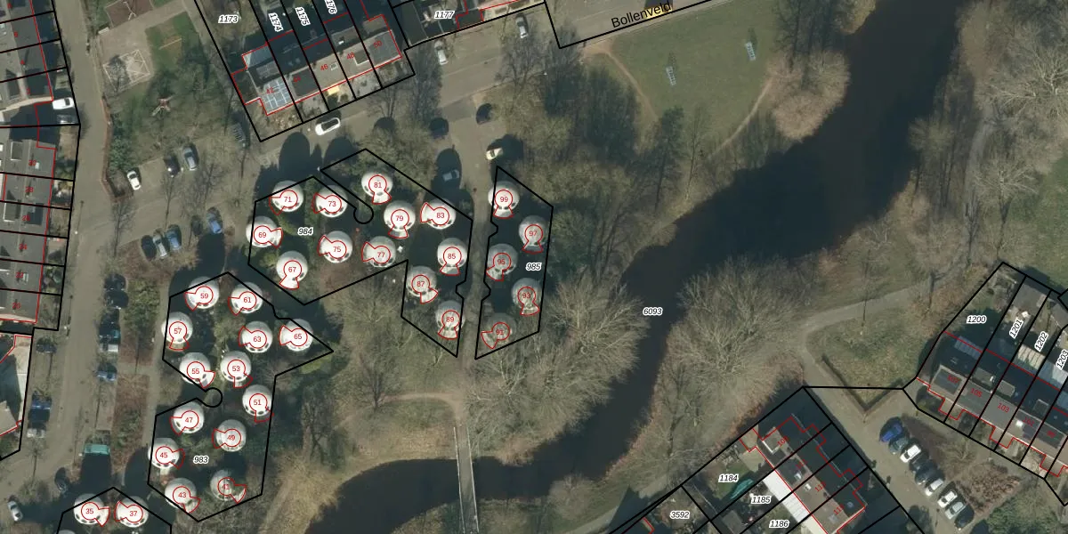 Gebruik de zoekbalk of klik op een perceel om informatie over het perceel te bekijken.