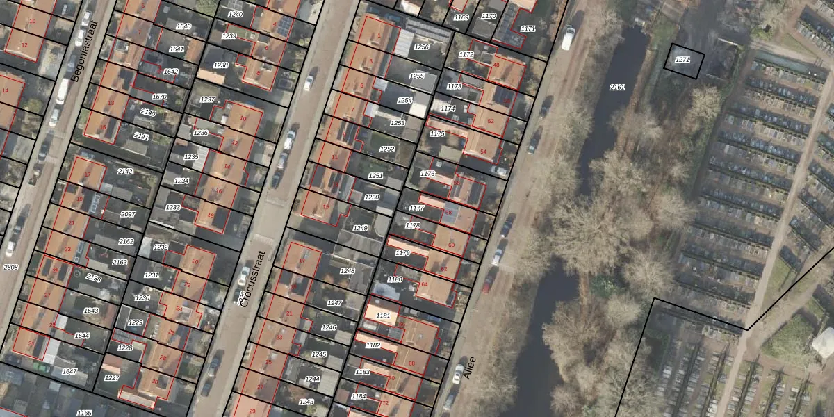 Gebruik de zoekbalk of klik op een perceel om informatie over het perceel te bekijken.