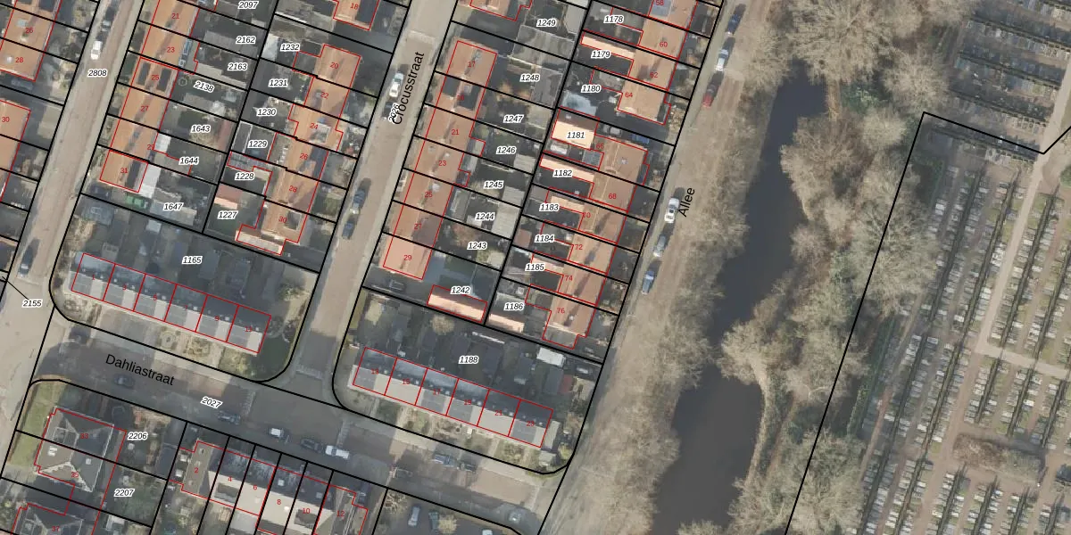 Gebruik de zoekbalk of klik op een perceel om informatie over het perceel te bekijken.