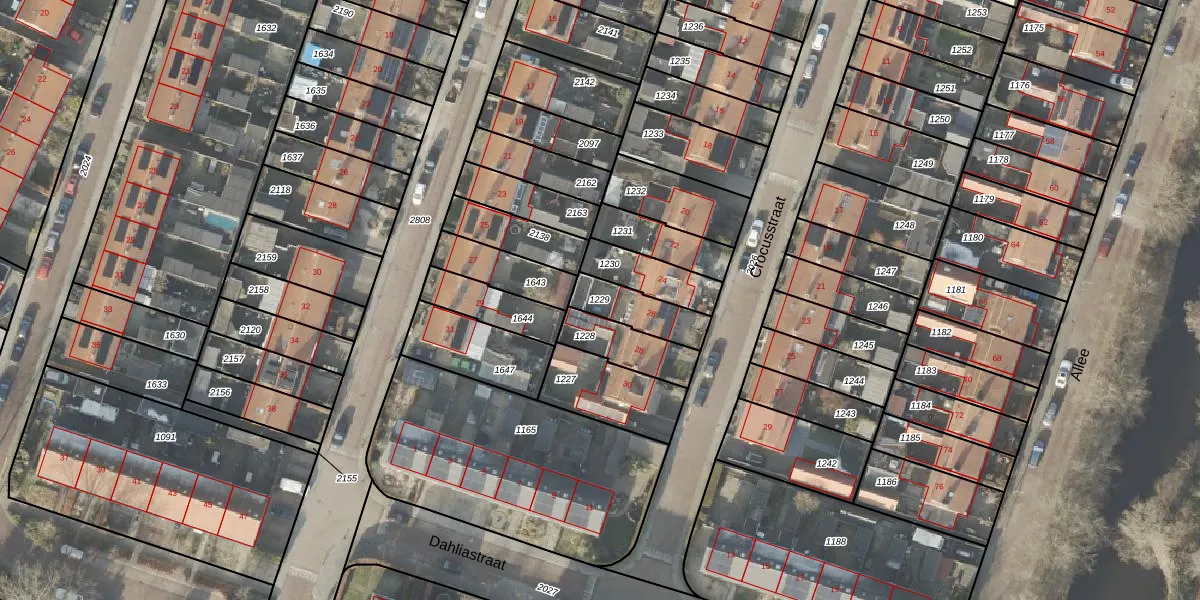 Gebruik de zoekbalk of klik op een perceel om informatie over het perceel te bekijken.