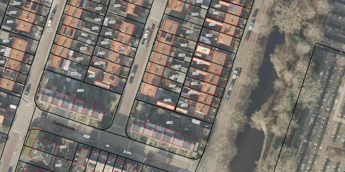 Gebruik de zoekbalk of klik op een perceel om informatie over het perceel te bekijken.