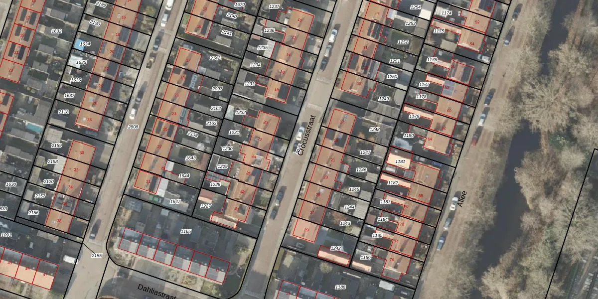 Gebruik de zoekbalk of klik op een perceel om informatie over het perceel te bekijken.