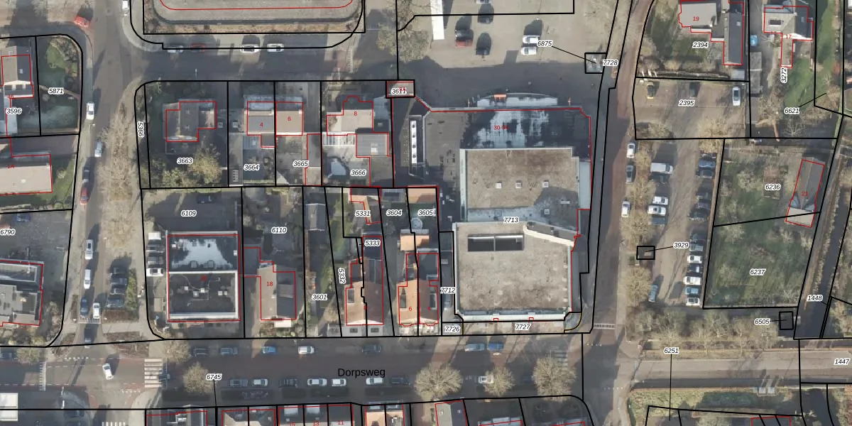 Gebruik de zoekbalk of klik op een perceel om informatie over het perceel te bekijken.