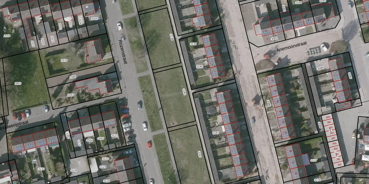 Gebruik de zoekbalk of klik op een perceel om informatie over het perceel te bekijken.