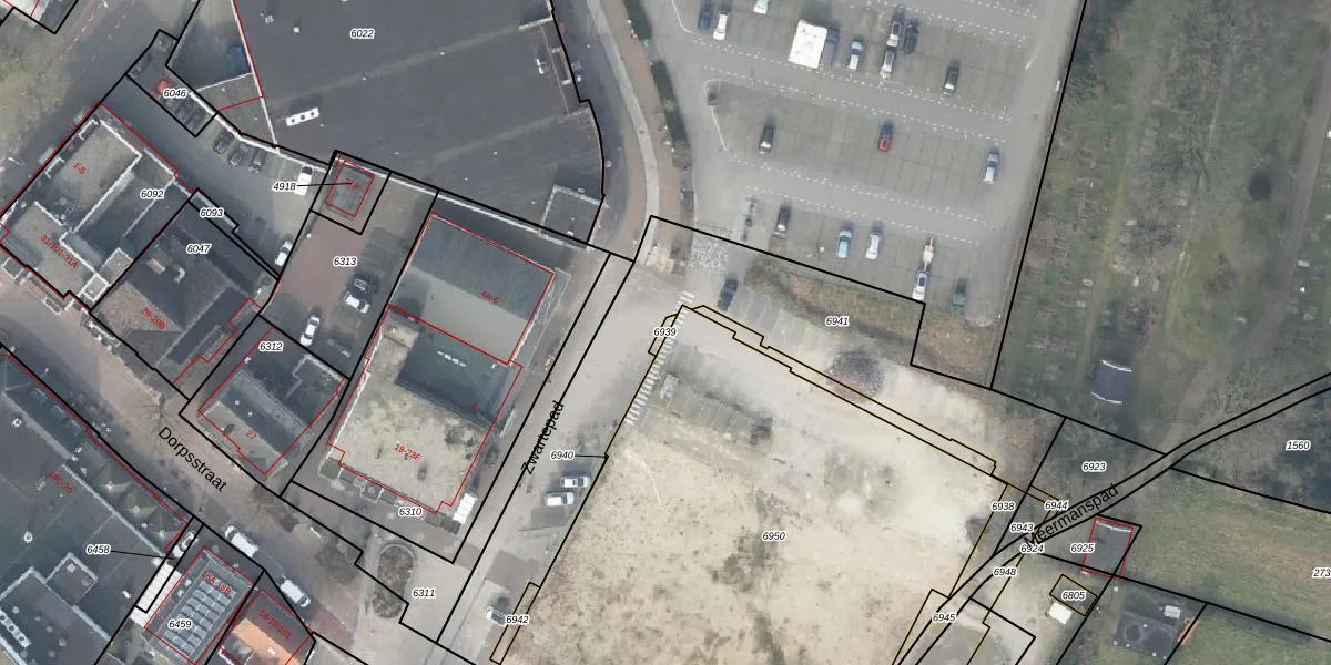 Gebruik de zoekbalk of klik op een perceel om informatie over het perceel te bekijken.