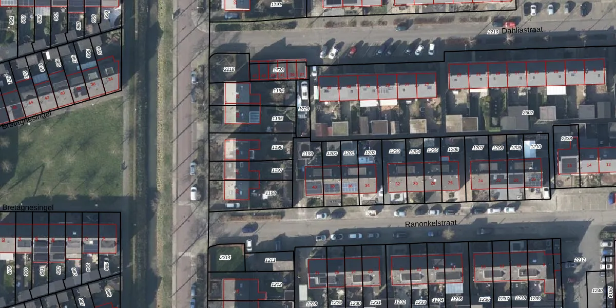 Gebruik de zoekbalk of klik op een perceel om informatie over het perceel te bekijken.