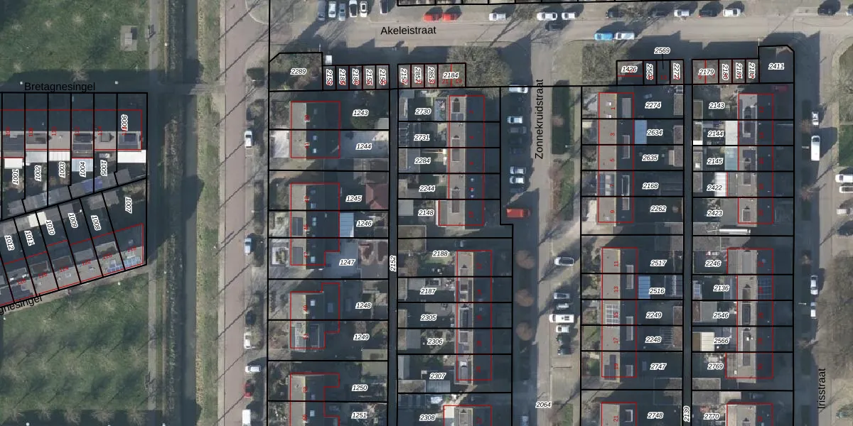 Gebruik de zoekbalk of klik op een perceel om informatie over het perceel te bekijken.