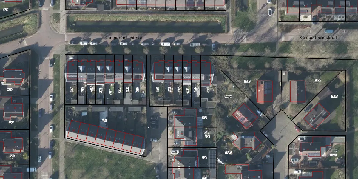 Gebruik de zoekbalk of klik op een perceel om informatie over het perceel te bekijken.