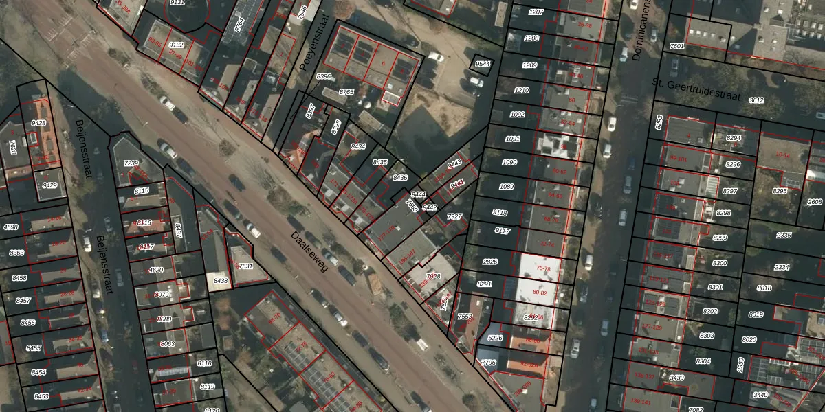 Gebruik de zoekbalk of klik op een perceel om informatie over het perceel te bekijken.