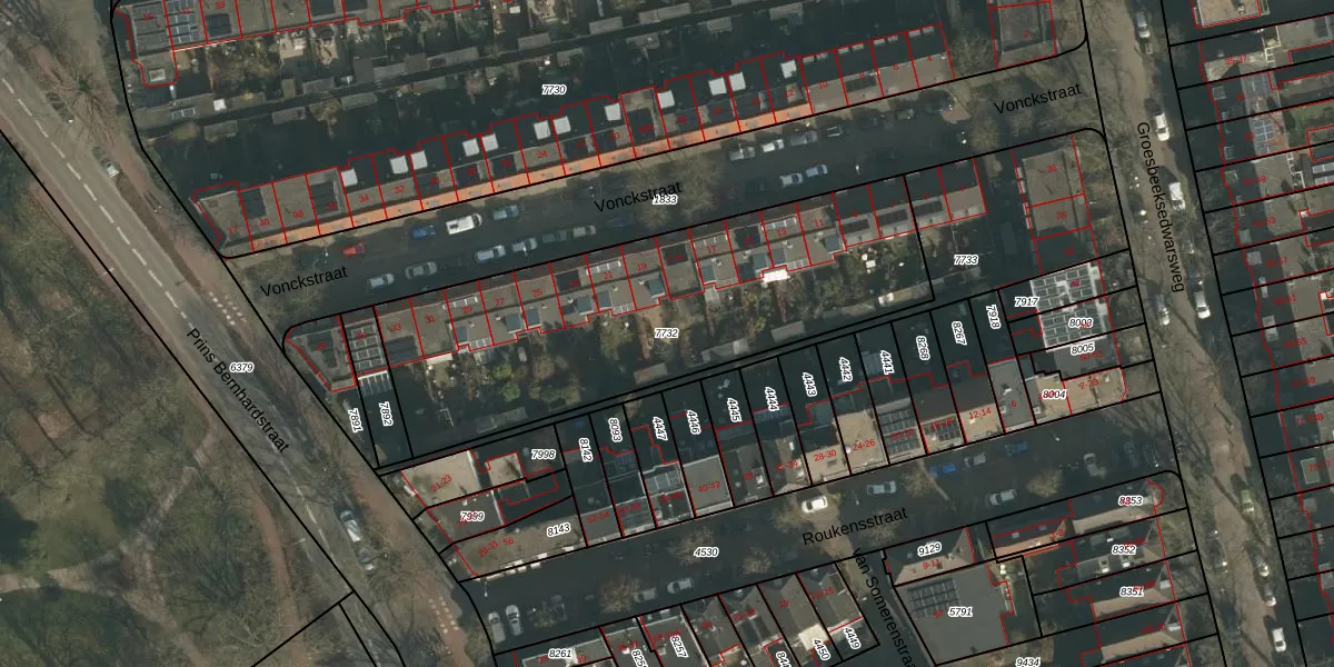 Gebruik de zoekbalk of klik op een perceel om informatie over het perceel te bekijken.