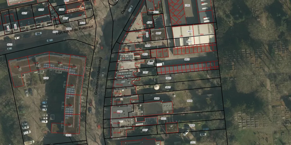 Gebruik de zoekbalk of klik op een perceel om informatie over het perceel te bekijken.